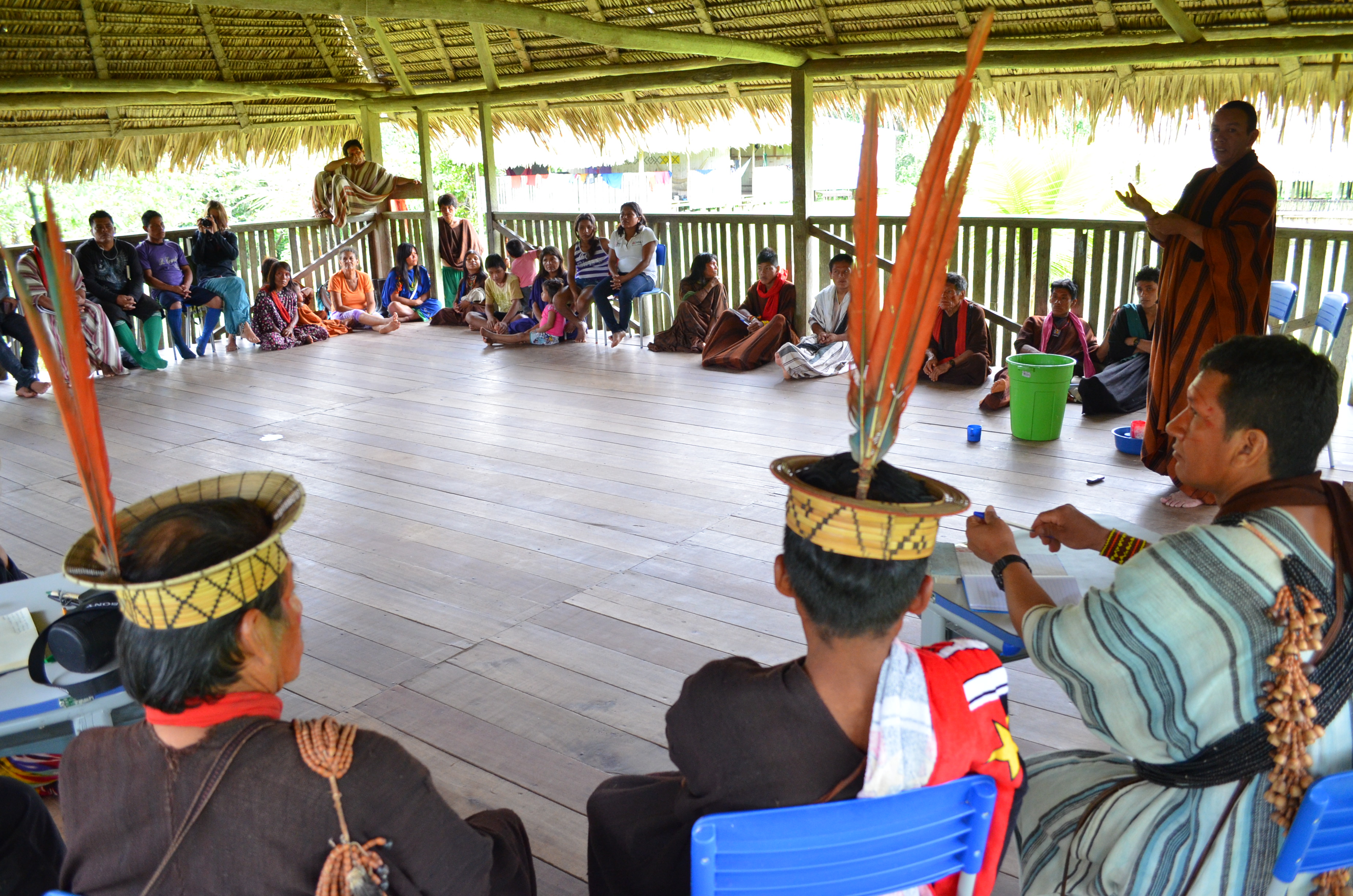 Just after Christmas and the New Year, I happened to see this same debate on the ground, when I arrived at the Ashaninka village “Apiwtxa”, in the border between Brazil and Peru, where the 9th Meeting of the Indigenous Peoples from the Acre (Brazil) – Ucayali (Peru) Frontier was taking place. The meeting happened at the village’s school during one week, and had the support of Comissão Pró-Índio do Acre (CPI-AC) – a Brazilian NGO. It gathered indigenous representatives from the Ashaninka, Amahuaca and Kaxinawa peoples who live close to the border. The discussions were mainly about the threats their territories are suffering from illegal hunting and fishing, logging, and gas and oil exploration, and how they can build collective strategies in order to be heard and to resist. One of the Peruvian Ashaninka leaders said: “When there is a big development initiative in our territory, we know we are going to suffer a big impact. We should think about our own development, that it is inside our community and in our spirituality. We need to defend our territory. We need to regain our values. We should start working as they are here (referring to the Ashaninka from Apiwtxa, in Brazil)”.