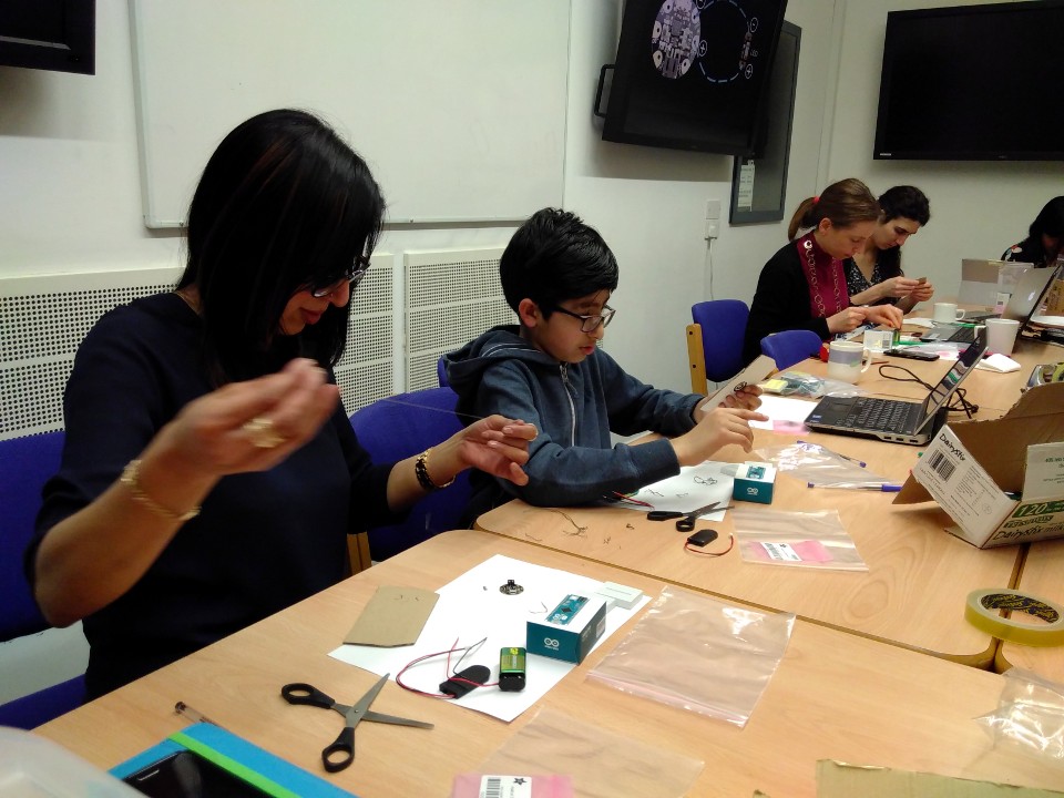 In my opinion, the most important take away is to put yourself in the students’ shoes. By learning how to explain something to someone with no knowledge of it, you are forced to organise said knowledge in a way that actually reinforces your own understanding. For the Arduino workshop, it led me to teach with wearable components such as the Adafruit Gemma board. Not only is the Gemma a simpler Arduino board, but it needs no soldering. All you have to do is to sew the Gemma to a LED with conductive thread (I didn’t even know conductive thread existed: Another new thing I learned!). This approach made the topic much more approachable and certainly less intimidating than soldering. I also did a dress rehearsal of the workshop by teaching it to Gianfranco first, which greatly helped with refining how I explain everything and tweaking the timing. By going through the process you catch things that are easily missed when just “thinking” about it. For instance, the rehearsal taught me to organise the parts needed into bags to be passed to each participant beforehand to save time.