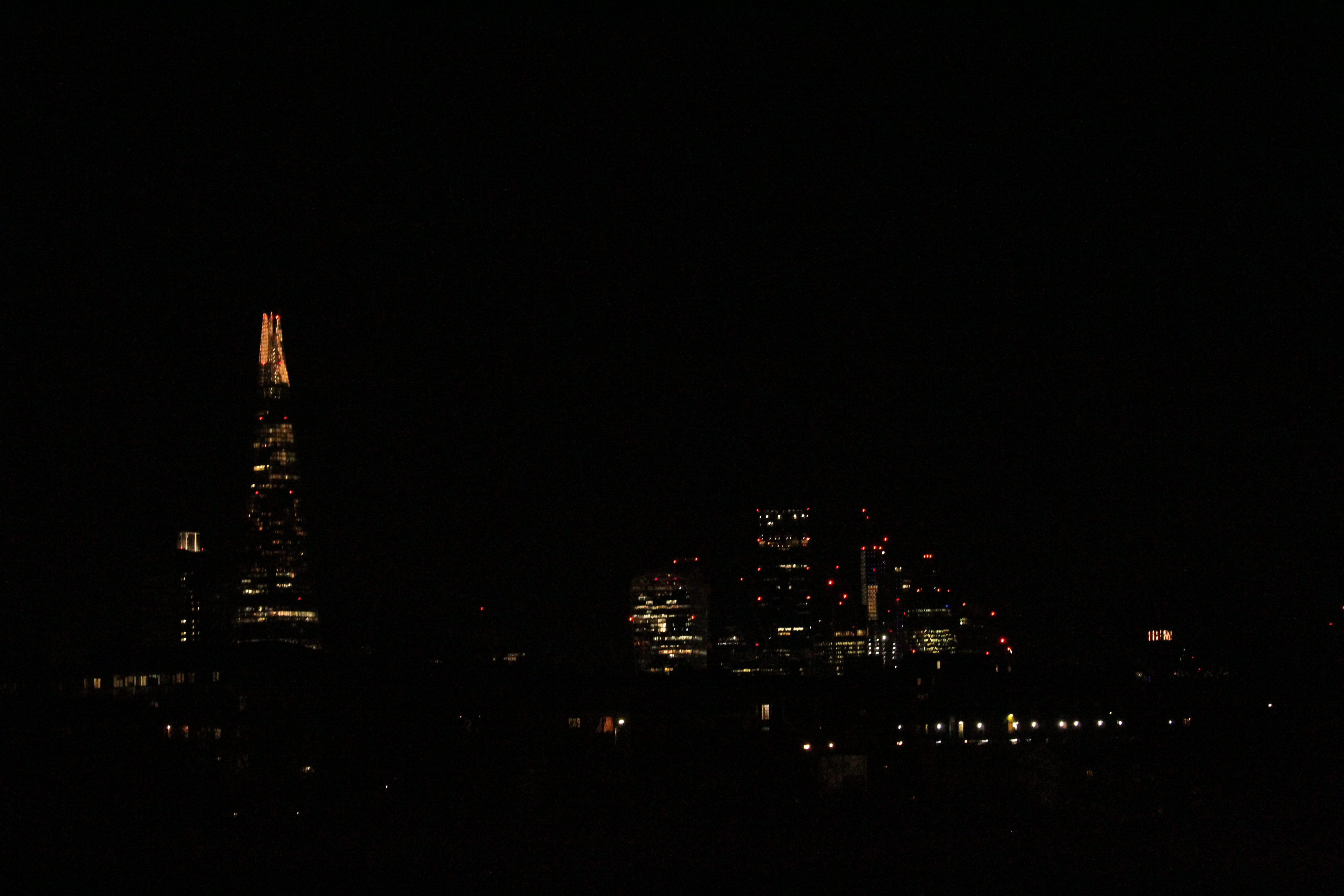 The Shard from Burgess Park April 27, 2017 Return to: Interview the Researchers: What was “Into the Night”?Full resolution (5184 × 3456) Image navigation Previous Image The Shard at night, seen from Burgess Park. They turned off their lights for Earth Hour, 8:30-9:30pm, then switched them back on.