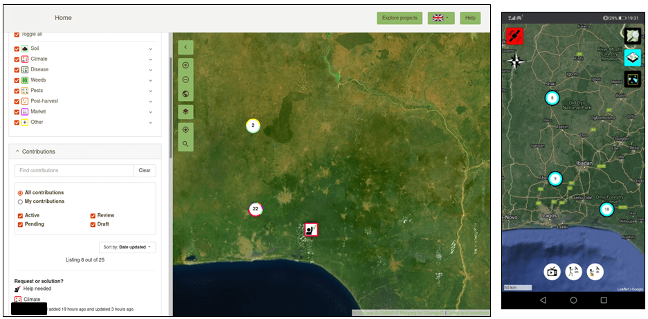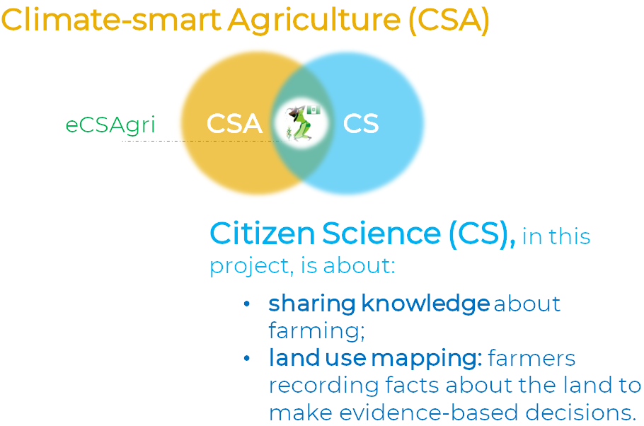 The Extreme Citizen Science in Agriculture project (eCSAgri) was a six months pilot project helping to facilitate collaborative and participatory Climate-smart Agriculture (CSA) with three smallholder farming communities in three agro-ecological zones in South West Nigeria. The project ran from January to June in 2021 and around 15 farmers in each community were engaged together with 5 agricultural extension officers, who are professionals that support farmers and act as intermediaries between farmers and government and research institutions. Around 4 farmers in each community owned a smartphone – smartphones were not provided and only data bundles and a solar power bank per community was provided where needed. The project was led by the Environmental and Economic Resource Centre (EERC), Nigeria in collaboration with Mapping for Change, UK and ExCiteS and was funded by the UK Research and Innovation (UKRI). eCSAgri can be situated at the intersection of Citizen Science and CSA, which can be briefly described as an integrated approach for promoting productivity-enhancing, ecosystem-friendly, climate change-resilient and inclusive farming systems.