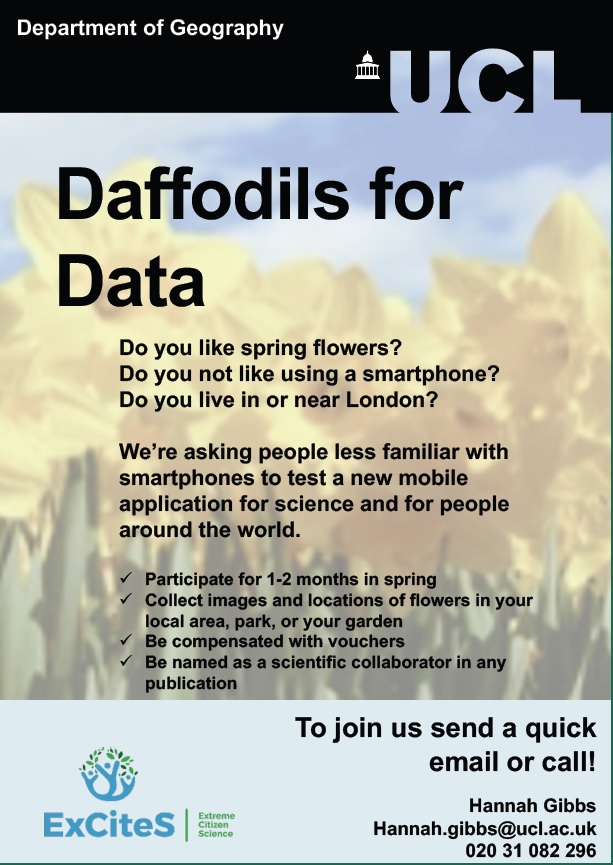 Recently, our group has launched a mobile application called Sapelli Viewer that will help support communities visualise the data they collect. This research gives us a good opportunity to test whether the application we have developed is user-friendly. People will use it to collect and analyse many sorts of data – this may be local flora and fauna, or it may be human activities that are affecting their environment. We work with people in various parts of the world who have never seen a map or a smartphone before. If you saw this and thought “I don’t know how to do this”, you’re just the person we’re looking for. If, after collecting the spring flowers data, you find you’ve become interested in that subject, we’ll give you a copy of the data you collected and tell you what projects will able to use it.