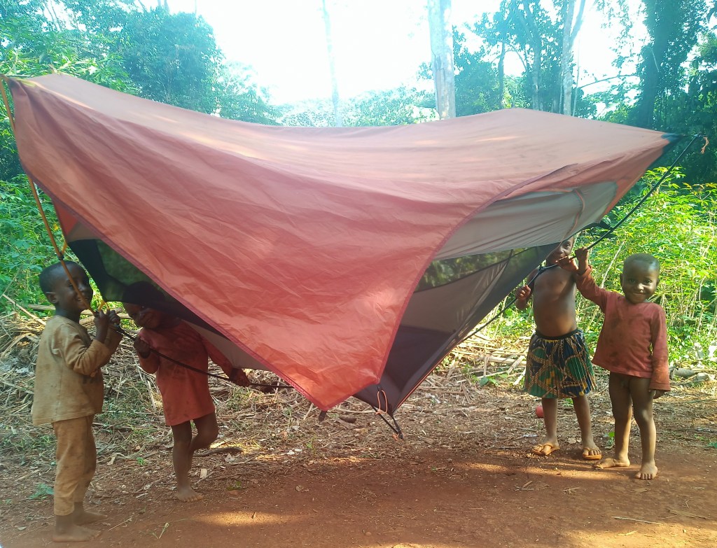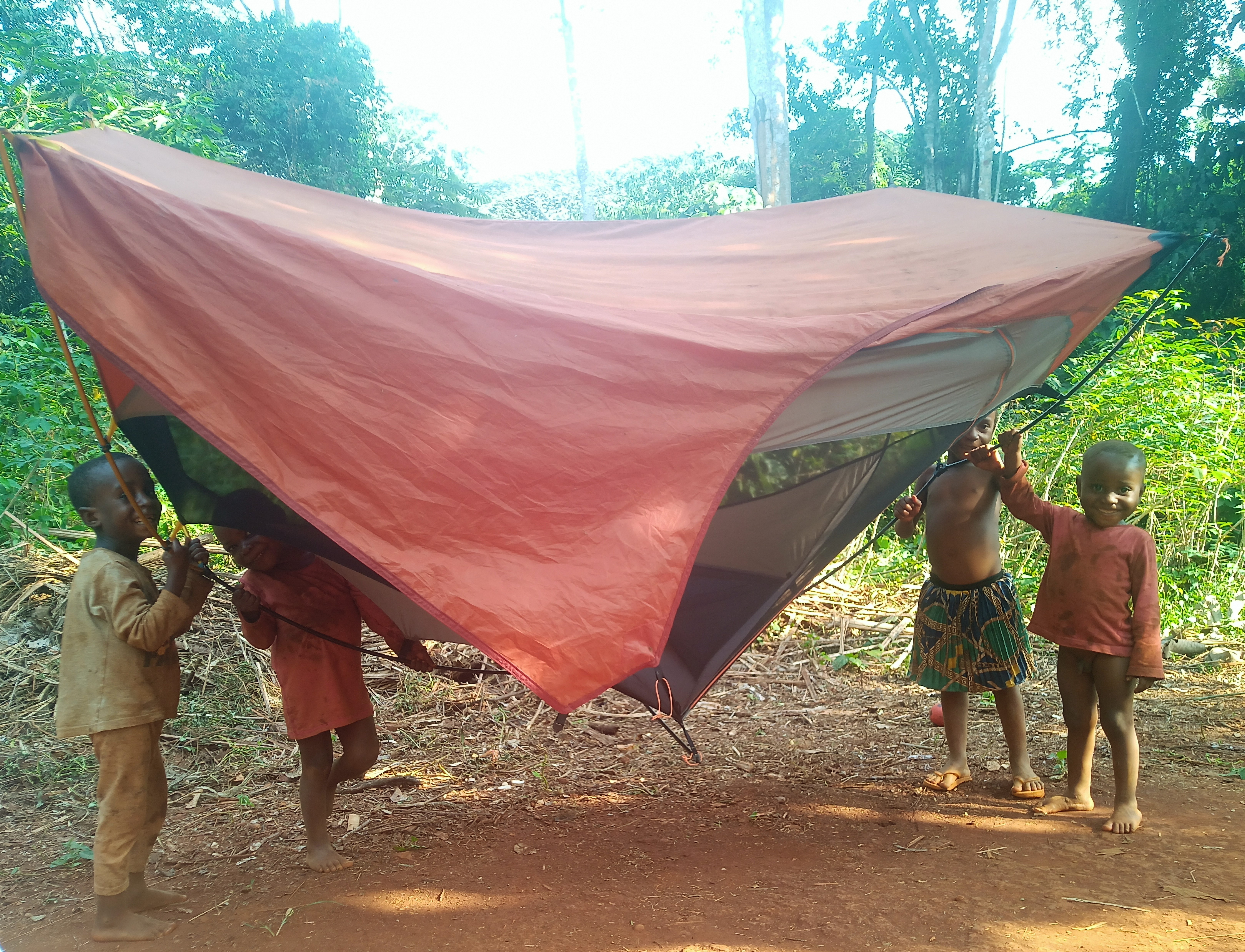 J’ai été un peu malade ces derniers temps. Malgré les écorces que les Baka me préparent, je me glisse dans la tente en pleine journée, sous le soleil d’or fondue qu’offrent les faibles latitudes. A cette heure, ma tente est un véritable sauna qui me permet d’extraire à chaud les toxines de mon corps. Je finis par m’endormir. Au réveil, je nage dans une baignoire que le liquide de mon corps avait remplie. La veille au soir, une invasion de fourmis légionnaires, comme celles que l’on peut voir dans les reportages animaliers, avaient dévorées ma tente. Le minutage est parfait. Les trous du parterre de ma tente constituaient autant de voies d’écoulement de ma sueur sur le sol rouge.