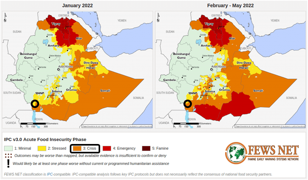 In the Lower Omo Valley in Ethiopia, a food security crisis is unfolding. According to the Famine Early Warning Systems Network (FEWSNET), the situation in the area has passed ‘stressed’ to reach the ‘crisis’ stage. Against this background, a few affected agro-pastoralists are mapping the natural resources they have access to, as part of an effort to better manage their resources and provide evidence to assess the scale of the disaster.
