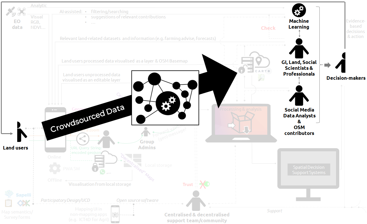 An in-depth spatial analysis of the crowdsourced data has not been conducted yet. This blogpost is a call for collaboration, and a data-driven collaboration framework is proposed and introduced below. A detailed description of the full diagram below is available in the second part of this blogpost (link here).