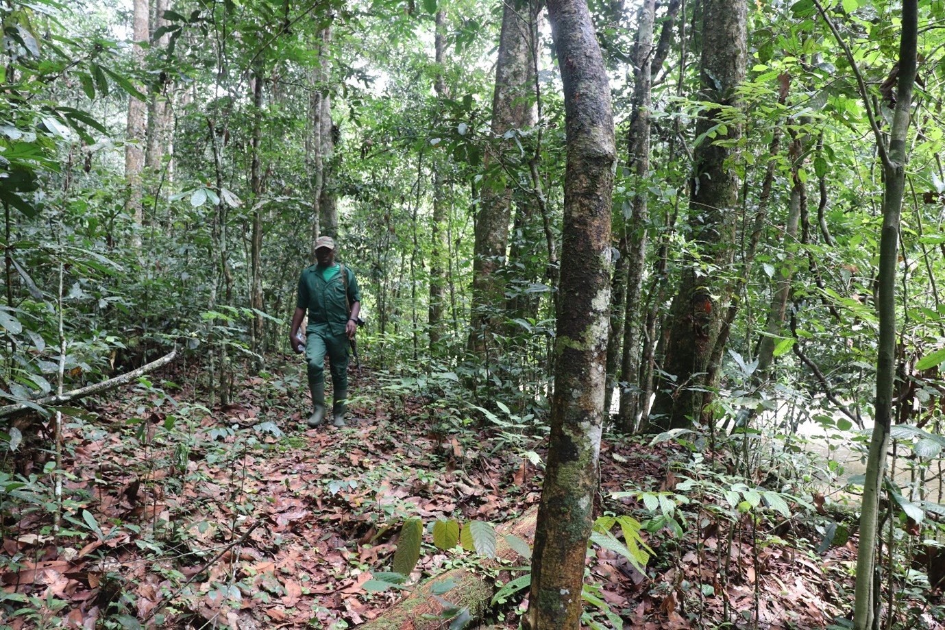Un écogarde patrouille en forêt.
