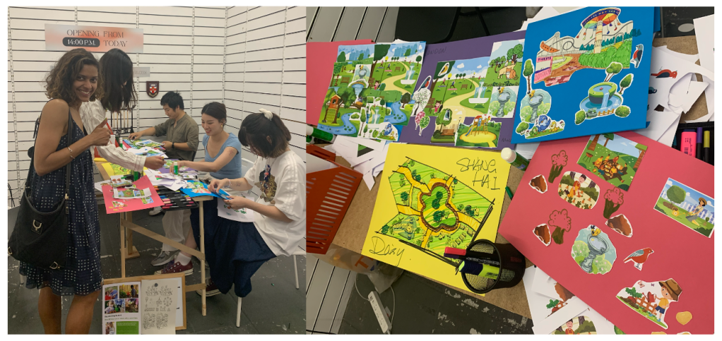 The remaining two hours were dedicated to creating city garden scrapbooks. Dr. Jian Chen (UCL Geography), assisted by Sihan Ma (a first-year undergraduate student at UCL Geography), began with a 15-minute introduction to the tools needed for scrapbook-making, including scissors, stickers, and cardboard. The task involved each participant writing the name of their favourite city on a piece of cardboard. Participants then selected stickers depicting elements such as trees, flowers, fountains, birds, and fish, cut them out, designed their own landscapes, and pasted them onto the cardboard.